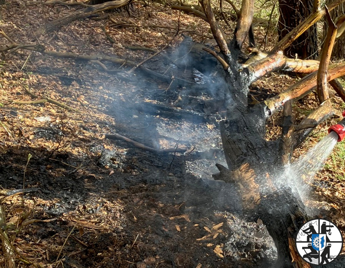 Aufmerksame Bürger bemerkten in einem kleinen Waldgebiet in Hülptingsen einen brennenden Baum und wählten daraufhin den Notruf. Wir löschten den Bereich ab und konnten dadurch eine Ausbreitung auf Unterholz und weitere Bäume schnell verhindern. |